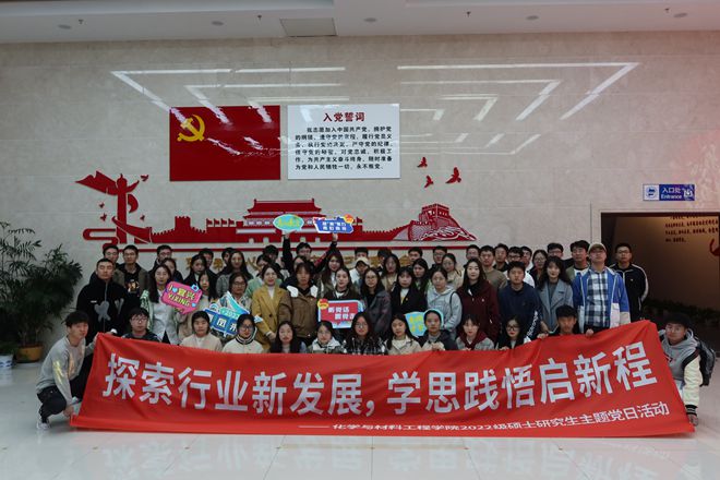 为深入贯彻学习党的二十大精神内涵和重大意义,进一步加强研究生党支部建设,提升基层党组织的创造力、凝聚力和战斗力。化学与材料工程学院于11月17日组织2022级硕士研究生党员开展“探索行业新发展,学思践悟启新程”主题党日活动。