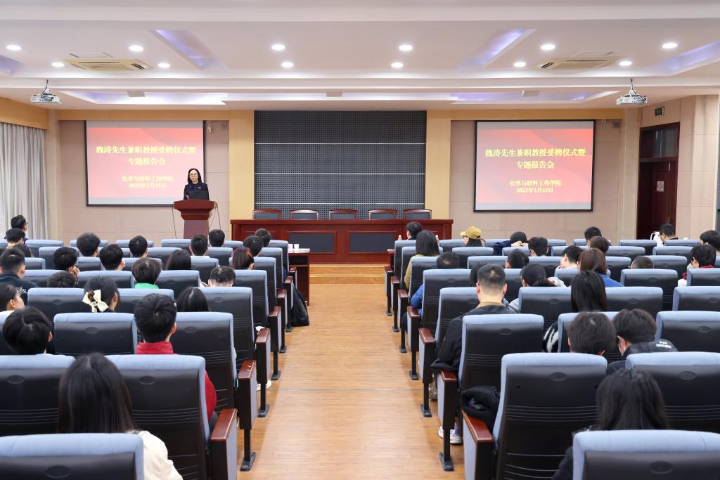 3月15日上午,魏涛先生兼职教授聘任仪式在化工楼B329会议室举行,校党委常委、副校长张影陆,香港中文大学教授魏涛,化工学院党委书记潘庆伟及师生代表出席活动。