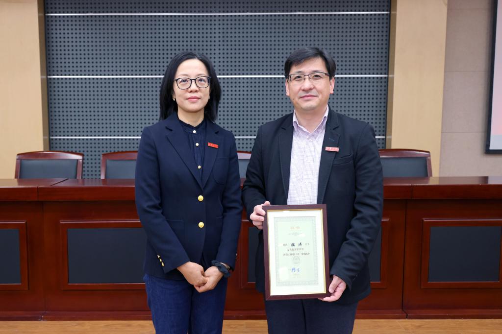 张影陆为魏涛颁发江南大学兼职教授聘书