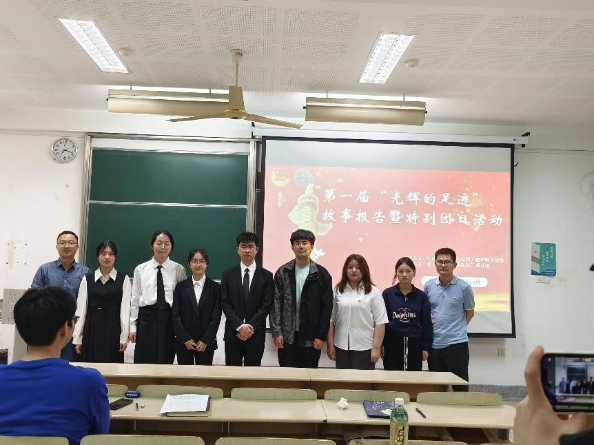 为深入学习党的二十大精神,挖掘红色故事,宣传红色文化,传承红色基因,进一步提升大学生的思想修养和道德水平,总结寒假社会实践,将实践成果固化为思政教育的鲜活素材,化学与材料工程学院于4月19日举行了“实践归来话成长系列活动”之“光辉的足迹”——实践故事报告会暨特别团日活动。分团委书记刘凡,分团委副书记鞠峰,学生会段艺倩以及“鼋访风华”实践团成员等出席并担任评审,材料系2022级100余名本科生参加了活动。活动由实践团成员鲁士杰、张诗茹主持。