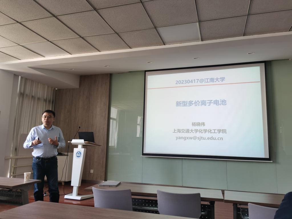 4月17日上午,清华大学王朝晖教授、上海交通大学杨晓伟教授应邀来化学与材料工程学院进行学术交流,并在化工楼A316会议室分别进行了两场题为“酰亚胺功能化的分子碳”和“新型多价离子电池”的学术报告。