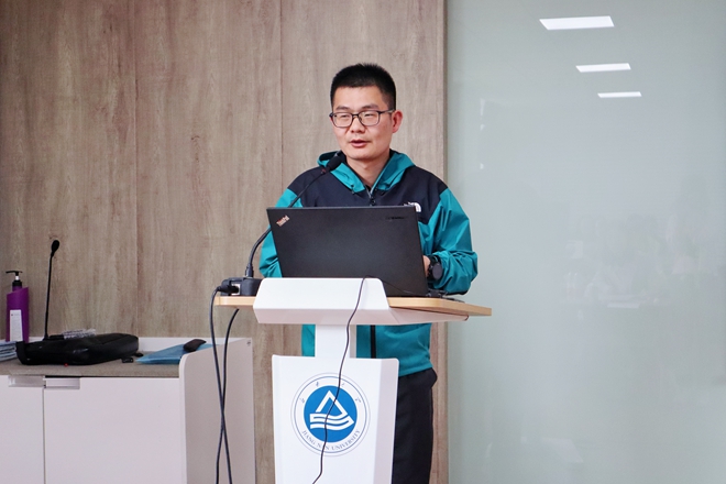 为进一步提升宣讲团成员的知识水平和宣讲能力,化工学院特聘孙晨光为“化语传党音”青年宣讲团导师,刘凡现场为其颁发聘任证书。随后,孙晨光以《用新的伟大奋斗创造新的伟业——深入贯彻党的二十大精神报告》进行主题报告。他从党的二十大报告的15个部分出发,结合自身经历与社会热点,融合国内国外史实时事,深入浅出地对党的二十大精神进行了精准解读,并对宣讲团成员的备课要点、宣讲重点、互动亮点进行了着重提醒和指导。