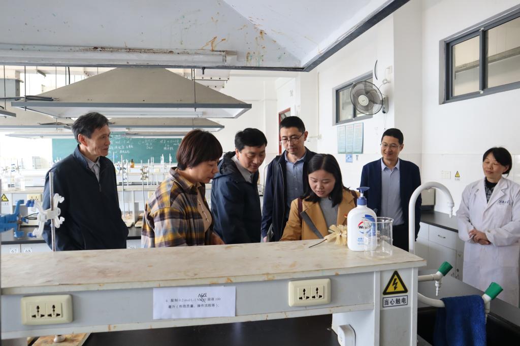 共建仪式结束后,江南大学教学中心刘湘主任、化工原理课程组长涂国云、物理化学课程组长高海燕、有机化学原课程组长储鸿、无机及分析化学课程组长李玲等骨干教师与扬州大学来访人员就实验室建设、化学竞赛组织等具体事项做了详细的介绍和交流。董玉明带扬州大学化学化工学院院长庞欢一行业务骨干参观了实验室,并对一些装置和设备的使用作现场演示。