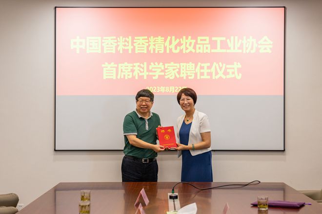 颜江瑛对陈坚院士团队在化妆品原料创新方面所做的工作给予高度评价,她指出这些成果大大增强了行业自信、文化自信,能够担当起人民群众对美好生活向往的使命,令国人感受到中国自信。颜江瑛亲自向陈坚颁发了中国香料香精化妆品工业协会首席科学家聘书。