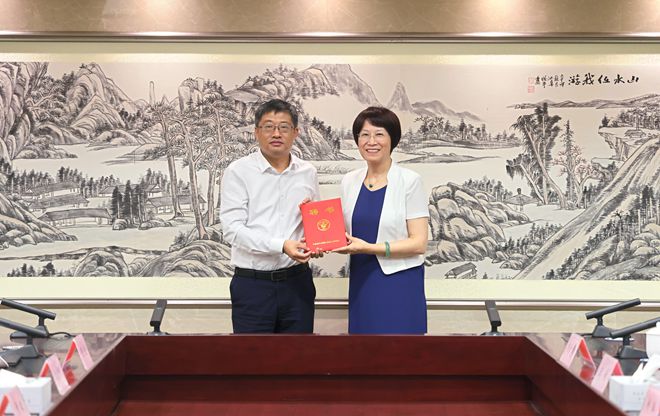 颜江瑛为陈坚颁发首席科学家聘书