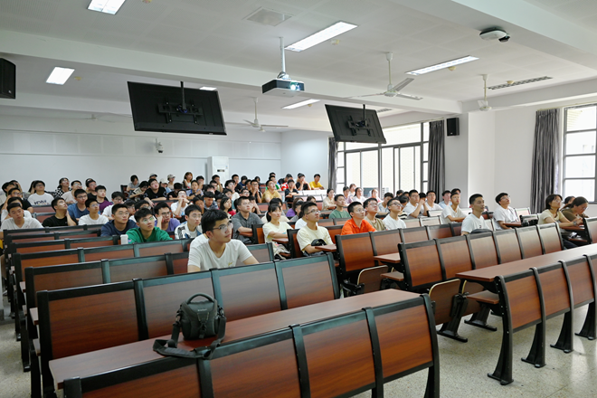化学工程与工艺专业见面会由化工系主任蒋建中主持。他首先表达了对化工专业新面孔的欢迎。接着,他以化工专业在各个领域发展状况为切入点,讲述了其在化妆品、环保、化工等领域的作用及意义,激发同学们学习化工的兴趣,并着重介绍了先进催化等技术,表达了对新生投入化工领域的期待。