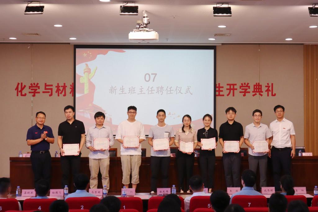 随后,举行新生班主任聘任仪式,王靖宣读2023级本科生班主任聘任决定,潘庆伟、刘仁为新生班主任颁发聘任证书。