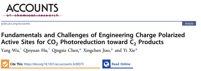 近期,化学与材料工程学院焦星辰教授、陈庆霞副教授与中国科学技术大学谢毅院士合作,在光还原CO2催化剂材料设计方面发表重要综述论文,相关工作在化学三大综述期刊之一“Accounts of Chemical Research”上发表:“Fundamentals and Challenges of Engineering Charge Polarized Active Sites for CO2Photoreduction towards C2Products”。Accounts of Chemical Research是美国化学会旗下的国际著名期刊,是国际上最具权威性的综述性期刊之一,旨在介绍化学、生物化学、材料科学、纳米科学等相关研究领域的最新研究进展。该刊物不同于一般的综述性期刊,它具有鲜明的“自我综述”的特色,主要是描述通讯作者自己的系统性研究工作,并且要对该领域的未来发展方向给出视野独特、具有前瞻性的展望。在Accounts of Chemical Research上发表学术论文,是作者所开展的研究工作具有系统性、创新性和重要国际影响力的标志之一。这是学院以第一单位在此期刊发表的首篇论文,论文第一作者为中国科学技术大学博士生吴洋和江南大学硕士生胡秦源。