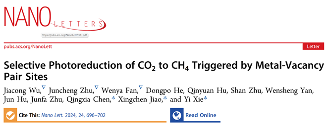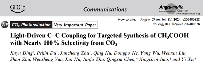 近期,我校化学与材料工程学院焦星辰教授课题组在CO2催化转化方面取得重要进展,研究成果“Light-Driven C-C Coupling for Targeted Synthesis of CH3COOHwith Nearly 100% Selectivityfrom CO2”在线发表于Angewandte Chemie International Edition(https://doi.org/10.1002/ange.202317726),“Selective Photoreduction of CO2to CH4Triggered by Metal-Vacancy Pair Sites”在线发表于Nano letters(https://pubs.acs.org/doi/10.1021/acs.nanolett.3c04012)。