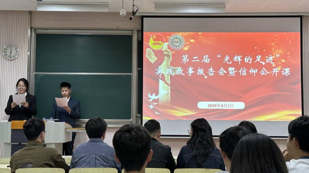 清风拂松柏,清明缅先烈。清明将至,为深切缅怀革命先烈的丰功伟绩,进一步挖掘红色故事、传承红色基因,引导广大青年学生从红色故事中汲取奋进力量,4月1日晚,化学与材料工程学院在二教2C211教室举办第二届“光辉的足迹”实践故事报告会暨信仰公开课。学院分团委书记鞠峰、2021级辅导员郝林青、2023级辅导员马航威、“鼋访风华”实践团负责人鲁士杰、张诗茹出席本次活动并担任评审,2023级100余名本科生参加了活动,活动由张林曼、祝方平主持。
