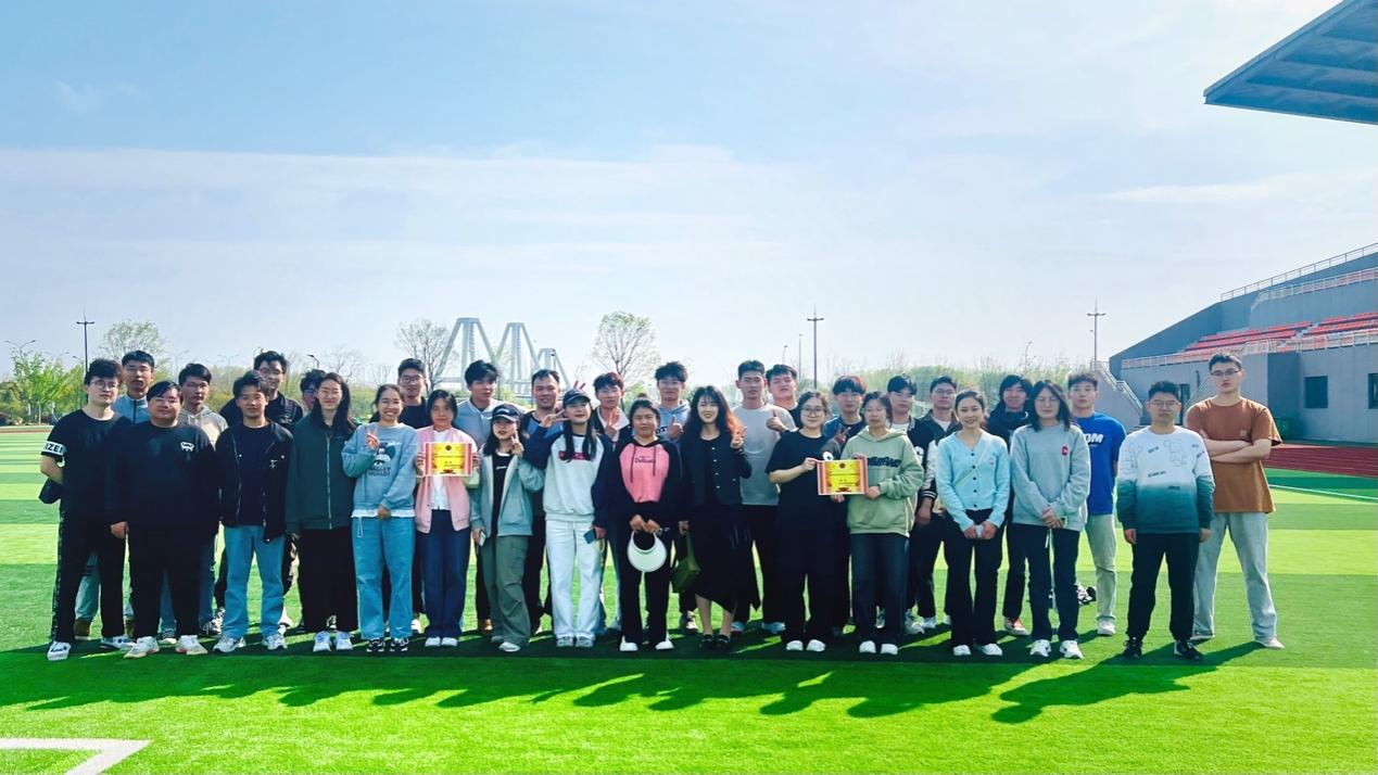 四支队伍在东西南北四个方向分别发力。“四向拔河”比双向拔河更具有难度,选手们除了要拉过对面的对手们,更要克服来自左右两侧的阻力。赛前准备时,各参赛课题组同学早已摩拳擦掌、跃跃欲试,各队导师与学生共同商讨比赛战略。只见同学们统一压低重心,双手紧握麻绳,前腿直跨,后腿弓步,向后倾身,屏气凝神,保持严阵以待的姿态,随着主裁判的一声令下,拔河比赛正式开始。动作紧跟着一声声有力的呐喊、一次次技巧的运用,获胜标记也跟随绳子不断移动,赛况激动不已。一番厮杀角逐后,由研会工作人员统计比赛积分,最终B811课题组获得第一名,B1009课题组获得第二名,B1708课题组获得第三名,A903课题组获得第四名。学院研究生辅导员李晓洁为获奖队伍颁发奖状及活动奖品。赛后,拔河队员们欢呼雀跃,庆祝共同努力取得的成绩。