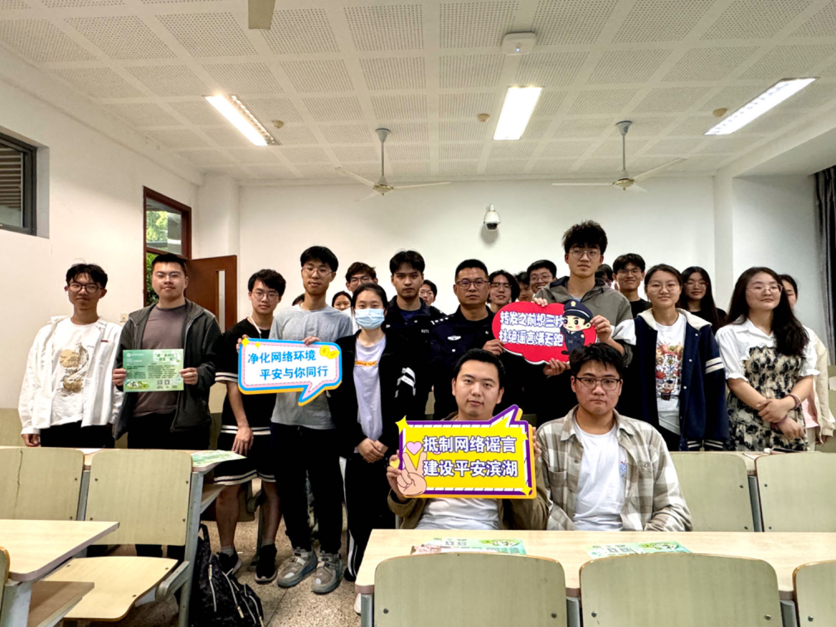 为进一步增强网络诚信建设,普及网络安全知识,强化资助工作育人效果,营造诚实守信的校园文化氛围,5月7日,雪浪派出所与化学与材料工程学院联合举办了“传递指尖责任·抵制网络谣言”网络诚信主题教育活动。2023级本科生全体宿舍长及权益委员参加了本次活动。