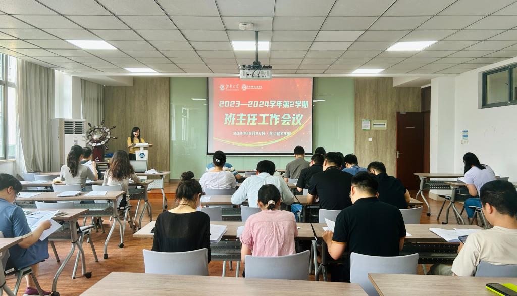 为贯彻落实学校、学院各项工作安排,进一步强化班级管理,提高班主任工作管理水平,5月24日下午,化学与材料工程学院在学院A316会议室召开了2023-2024学年春季学期班主任工作会议。全体辅导员、各年级班主任参加了本次会议,会议由学院党委副书记、副院长董霞主持,本次会议包括了学期工作安排、安全纪律要求、日常管理研讨、毕业就业动态、班主任考核条例修订等内容,会上发放了学期班主任工作资料,便于班主任梳理学期工作。