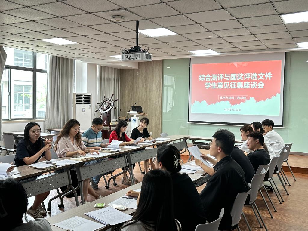为进一步完善综合测评体系,确保评定工作的科学性、公正性和合理性,7月11日下午,江南大学化学与材料工程学院于化工楼A316会议室成功开展关于学院研究生综合测评及国家奖学金评定实施细则修订学生代表座谈会。化工学院党委副书记兼副院长董霞,分团委书记鞠峰,研究生辅导员侯玉莹、高静、李晓洁及研究生各班级代表参与本次会议。