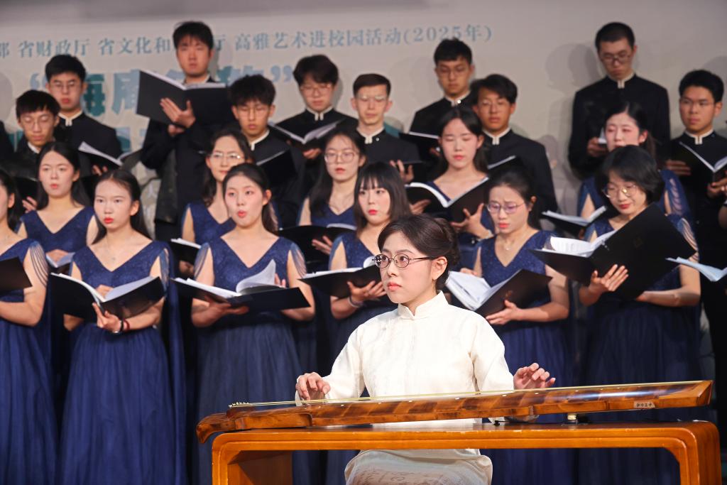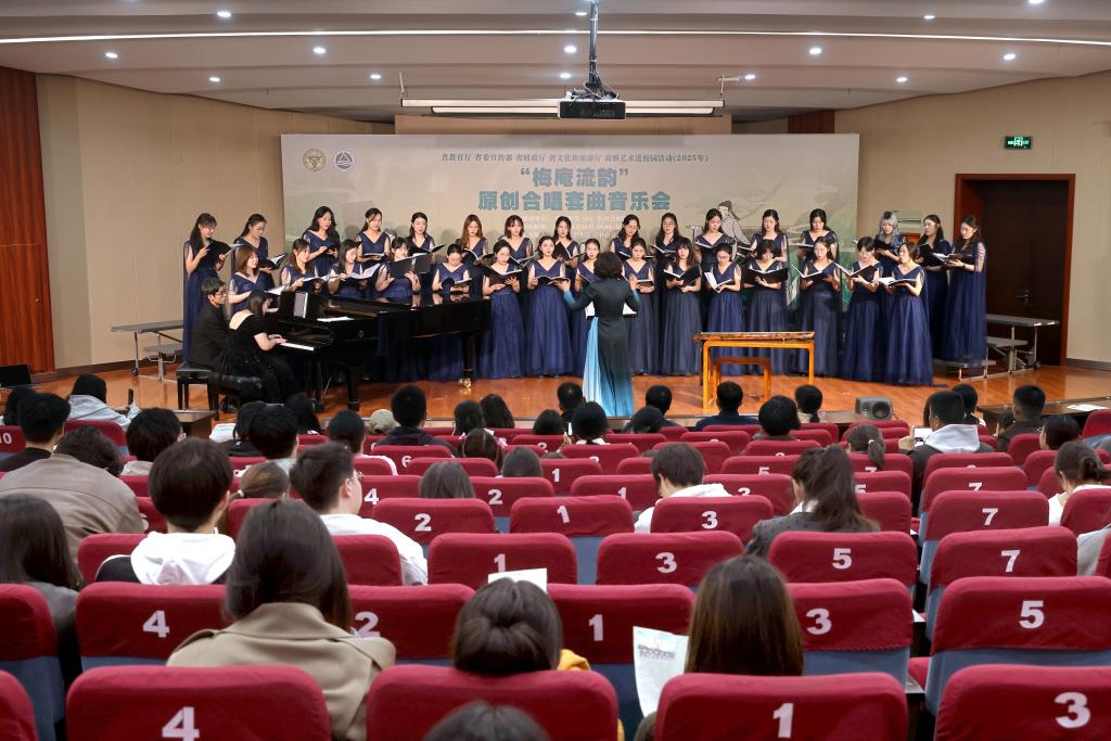 3月28日晚,2025年江苏省高雅艺术进校园活动——东南大学SEU室内合唱团带来的“梅庵流韵”原创合唱套曲音乐会在北区大学生活动中心音乐厅精彩上演。