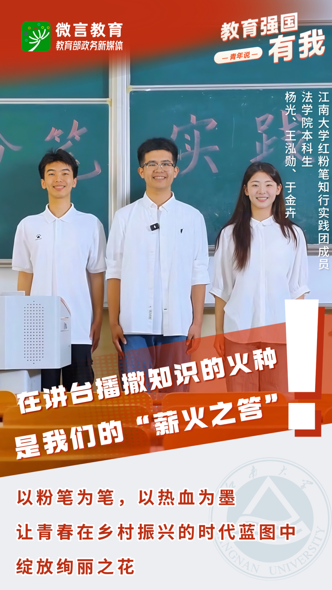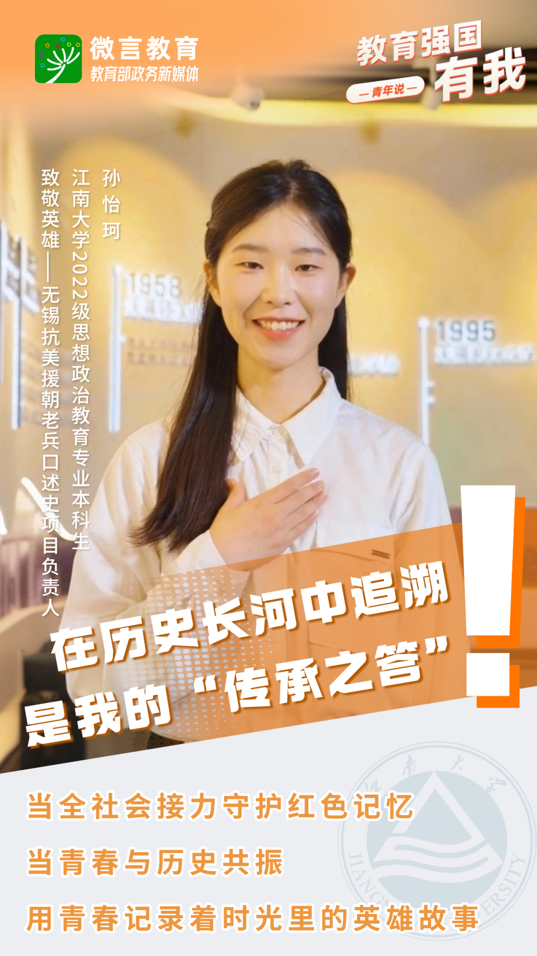 【微言教育6月2日】习近平总书记强调,全面推进强国建设、民族复兴伟业,正是年轻一代展示才华、大显身手的好时候。教育强国建设,青年何为?日前,教育部政务新媒体推出“教育强国,有我!”网络主题宣传活动之“青年说(奋进篇)”系列,展现青年师生以青春之我、奋斗之我投身教育强国建设的生动实践。今天,跟教育小微通过1个微视频和1组海报,共同感受江南大学青年学子的时代答卷。