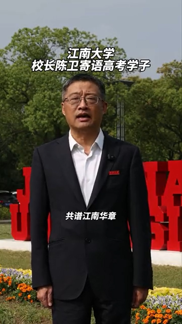 【中国青年报客户端6月6日】高考来临之际,江南大学校长陈卫寄语高考学子:十年砺剑今朝试,鹏程万里宏图展。江南大学正等待着你们,执笔共写共计民生的强国使命,期待金秋九月,与你共绘锦绣前程,共谱江南华章。