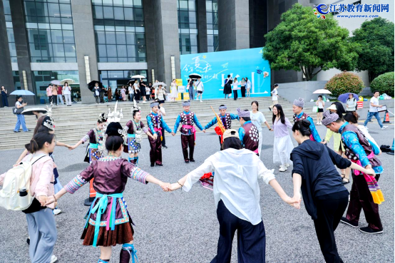 【江苏教育新闻网7月11日】近日,江南大学与贵州省从江县文化交流系列活动在该校举行,校园内洋溢着浓郁的民族风情与文化气息。活动涵盖“我为从江赠书香”图书募捐、从江县民族艺术团“走进锡城”专场演出、校园“快闪”、从江县农副产品展销和毕业歌会上的侗族大歌表演等多个环节。
