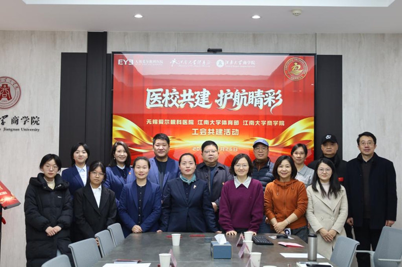 【江南时报网12月30日】12月26日下午,无锡爱尔眼科医院与江南大学商学院、江南大学体育部工会共建活动在商学院109会议室举行。无锡爱尔眼科医院党支部书记、CEO孙惠,江南大学商学院党委书记刘长青,江南大学体育部党总支书记周云龙,无锡爱尔眼科医院工会主席施逸飞,商学院分工会主席赵海蕾,体育部分工会主席沈炎及各工会代表、学生代表参加活动。活动由商学院分工会委员孙旭媛主持。