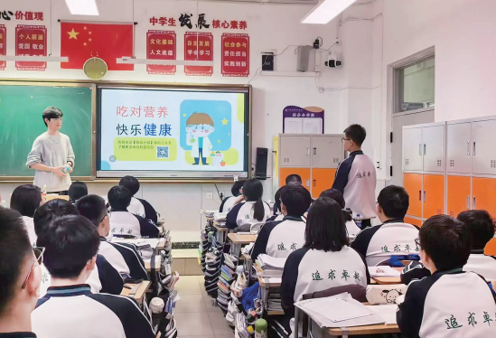 宣讲团先后走进鄂尔多斯衡越实验中学和东胜区第十五中学,针对初高中学生开展分层式、精准化营养科普。青少年处于生长发育关键期,树立科学饮食观念尤为重要,团队在策划阶段主动对接学校,围绕青少年饮食特点和常见营养认知误区,细化不同学段科普重点:面向高中生聚焦食品标签识读、零食选择与膳食结构优化;面向初中生,侧重基础营养知识和健康饮食习惯培养。团队队员走进两所学校高中部课堂,以小班化宣讲形式开展互动式科普。宣讲中结合具体实例,通过互动提问引导学生思考日常饮食中的营养问题,学生踊跃参与,就零食搭配、乳制品选择等疑问与队员深入交流,现场氛围热烈。宣讲团还为两所学校初中部分别举办专题讲座,用通俗易懂的语言讲解食品营养基础知识和健康饮食原则,穿插丰富互动环节增强参与感,帮助初中生夯实营养健康基础、培养良好饮食习惯。活动组织有序,获得师生广泛赞誉。