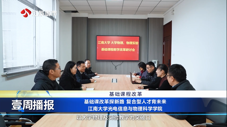 【江苏城市频道3月10日】3月10日,江苏城市频道《壹周播报》栏目以《基础课改革探新路复合型人才育未来》为题,专题报道了江南大学光电信息与物理科学学院大学物理及实验教学改革的创新实践。