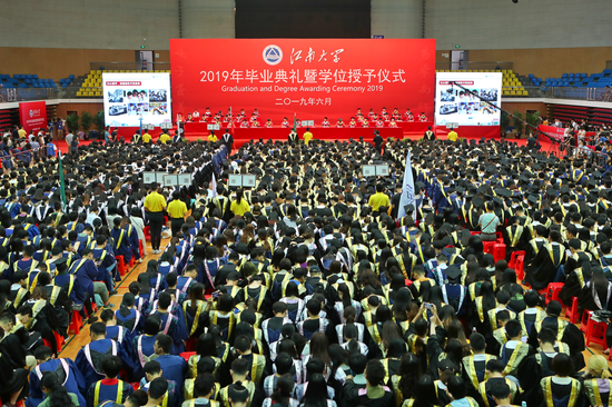 【新浪网6月23日】江南六月,绿阴幽草胜花时;毕业挥别,自此人生天地宽。6月22日上午,江南大学2019年毕业典礼暨学位授予仪式在学校体育馆隆重举行。5000余名毕业生齐聚一堂,以典礼见证江南的成长与收获,由此开启人生新的旅程与辉煌。在为期两天的学位授予仪式中,陈坚校长第八年倾情站立,坚持为每一位毕业生授予实名制学位,并一一合影留念,为同学们在江南大学的学习生涯画上圆满的句号。