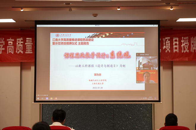 【新华网客户端7月5日】4日下午,江南大学举办高质量推进课程思政建设研讨会暨示范项目授牌仪式,这是学校自2019年以来,连续第五年在校级层面开展课程思政专题研讨。