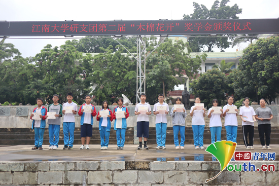 【中国青年网7月7日】为鼓励云南省保山市隆阳区芒宽彝族傣族乡民族中学学子励志勤学、奋发向上,近日,江南大学第24届研支团云南分队在芒宽民族中学举行“木棉花开”奖学金颁奖仪式。