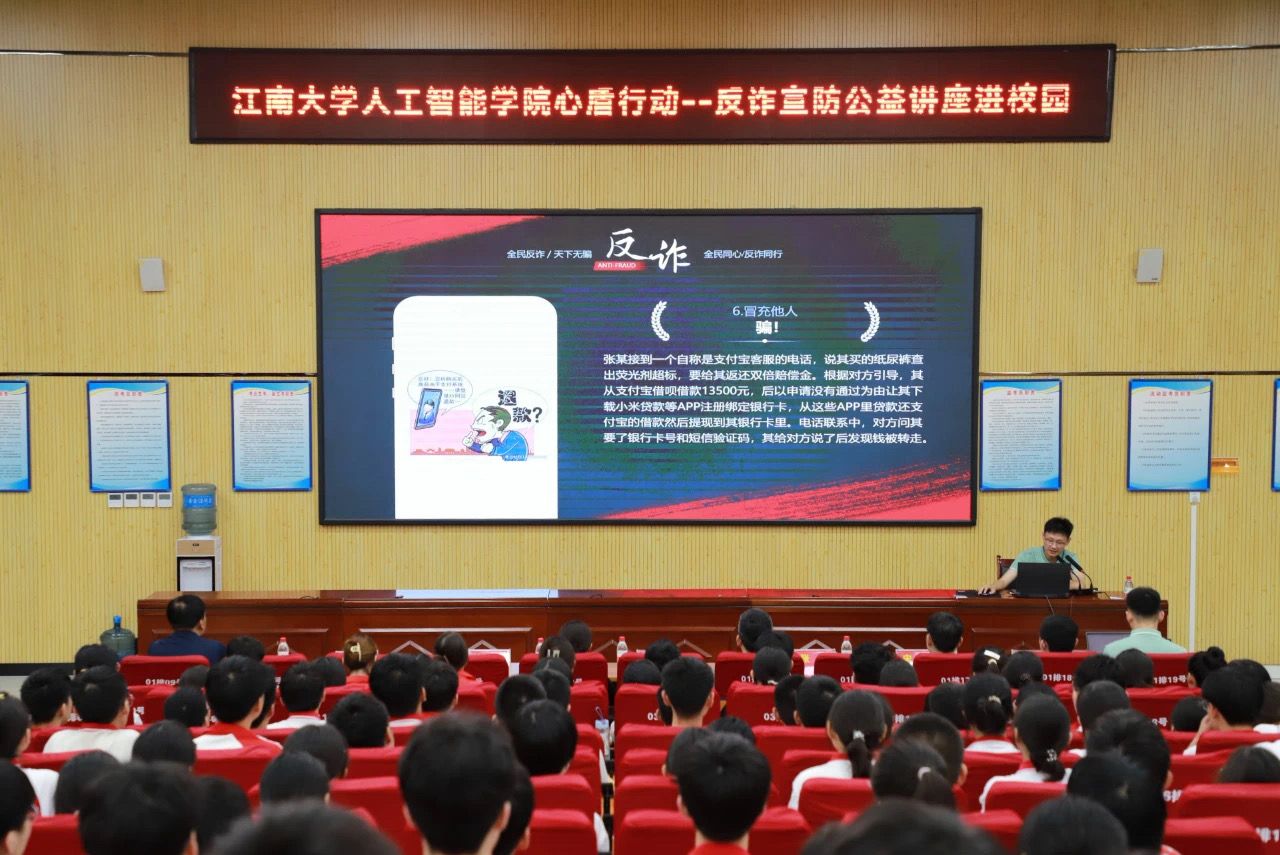 7月12日,公益实践团在学院党委书记张华带领下走进永年区第二中学,为300余名高中生和班主任做反诈宣防主题讲座。王晨旭向师生介绍了无锡市和江南大学的反诈经验和反诈成果,着重结合团队自行编写的程序,情景演绎式科普了AI换脸诈骗、合成音频诈骗等最新骗局,并从如何识别、如何规避等角度进行了重点阐述,使在场师生切身感受AI诈骗“以假乱真”的巨大危害,提高了防范网络电信诈骗的警惕性和敏感性,增强了师生知法懂法守法用法能力。主题讲座结束后,现场的高中学子围绕在公益实践团成员身边,现场查看AI换脸技术的源代码、体验换脸过程,并就人工智能专业知识进行探讨。一名高二学子表示:“之前在网络上看到有人利用AI‘偷脸’诈骗400多万,当时就比较好奇这个换脸过程是如何实现的,今天终于解开了我的困惑,也让我进一步了解了人工智能技术的无所不能,更加深了对此类骗局的认知和警惕。”