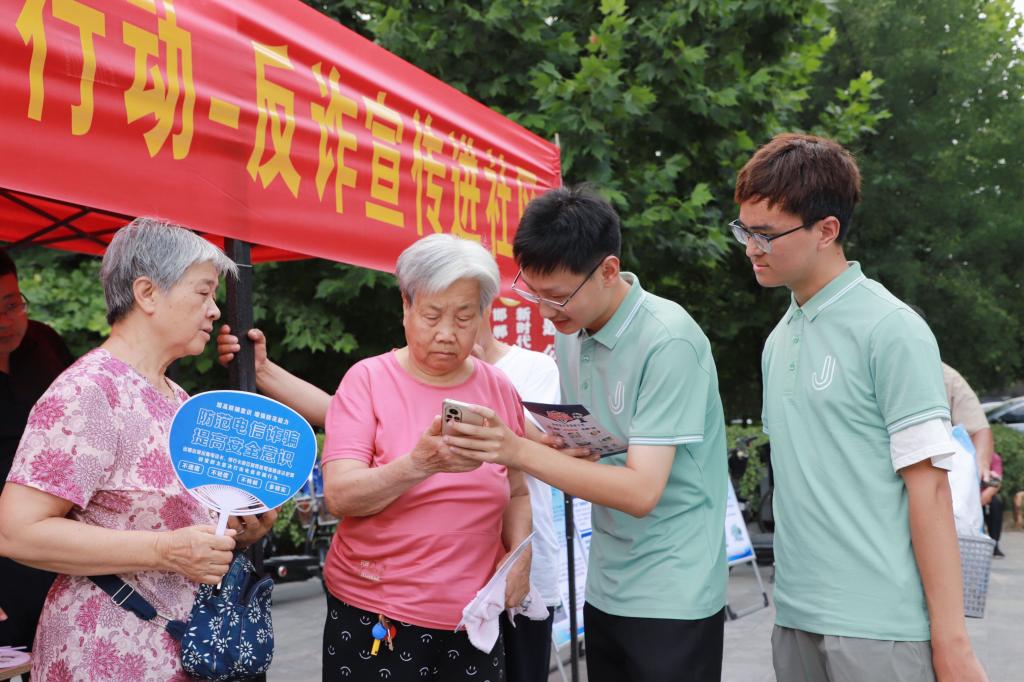 【中国青年报客户端7月17日】深入贯彻落实习近平总书记关于打击治理电信网络诈骗犯罪工作的重要指示精神,进一步提高广大师生和社区居民的反诈意识,增强对电信网络诈骗犯罪的辨别和应对能力,全力打造平安和谐社会,江南大学人工智能与计算机学院“心盾行动—反诈宣防公益实践团”深入邯郸市永年区开展暑期社会实践。