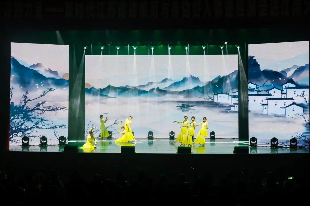 江南大学人文学院舞蹈系学生带来了舞蹈表演《澹澹汀雨》。舞蹈展现了江南水乡,白墙黑瓦,小桥流水,孕育了江南女子的勤劳勇敢,灵秀智慧的美好精神品质。