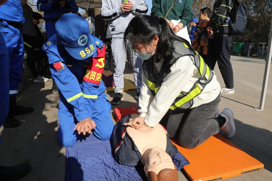 图为钟泽在进行CPR实操练习。中国青年网通讯员 刘天宇 摄