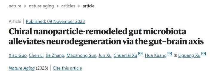 【人民日报客户端】11月9日,江南大学胥传来教授团队在国际学术期刊《自然》的子刊《自然·衰老》上发表了一项最新研究成果。该研究表明,口服手性颗粒可通过重塑肠道菌群并改善色氨酸的代谢,有效改善脑部的神经炎症,从而为治疗阿尔茨海默症提供新思路。