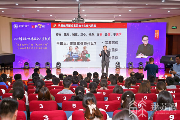 融入主流,强国有我。中宣部全国基层理论宣讲先进个人、央视《百家讲坛》主讲嘉宾、教育部首批思政工作精品项目“宝哥说”主讲人、江南大学唐忠宝教授从激越风雨论家国的书生意气谈起,点燃了青年人心中的爱国爱党之光。