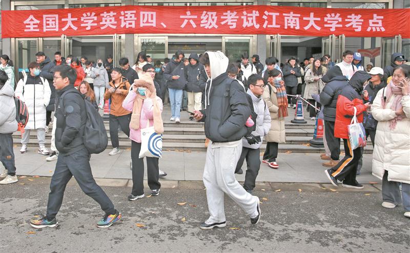 【江南晚报】12月16日,在江南大学考点,考生们在结束考试后走出考场。当日,2023年下半年全国大学英语四、六级考试开考。