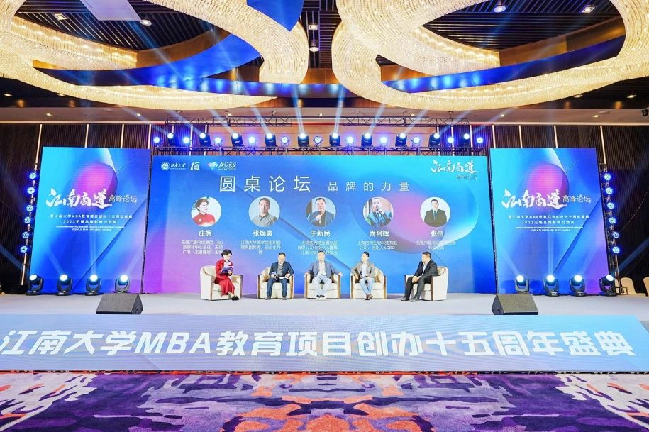 【央广网11月29日】求学问道下江南,登高致远赢未来。11月25日下午,“江南商道”高峰论坛暨江南大学MBA教育项目创办十五周年盛典2023无锡品牌影响力颁奖顺利召开。本次高峰论坛由江南大学商学院、MBA教育中心主办,MBA校友会、MBA联合会、无锡广电集团联合承办。活动邀请了无锡市委常委、统战部部长周常青,江南大学党委书记吴正国,全国MBA教育指导委员会秘书处办公室主任、中国学位与研究生教育学会工商管理工作委员会秘书长王萍,浙江财经大学副书记、副校长(主持工作)魏江,江南大学党委常委、统战部部长朱飞等领导出席,来自无锡市发改委、工业与信息化局、无锡广电、江南大学职能部门和相关学院、江南大学各地校友会、兄弟校友会、业内专家、企业高管及商学院师生校友500余人参加了盛会,五万余人在线通过江南大学视频号、无锡博报同步观看活动。
