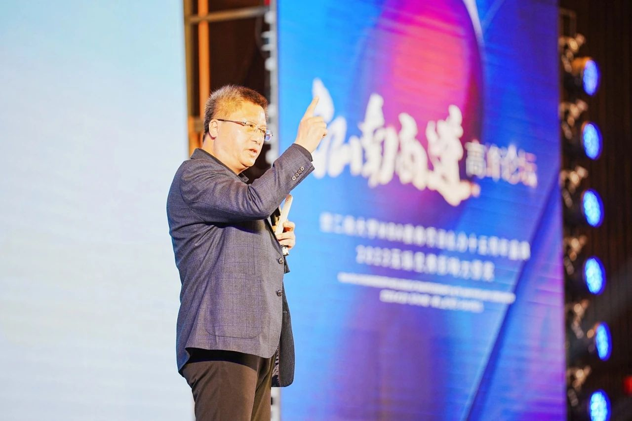 在论坛交流中,浙江财经大学副书记、副校长(主持工作)魏江以《“商学+教育生态系统”促进商学院的高质量发展》为题作了主旨演讲。