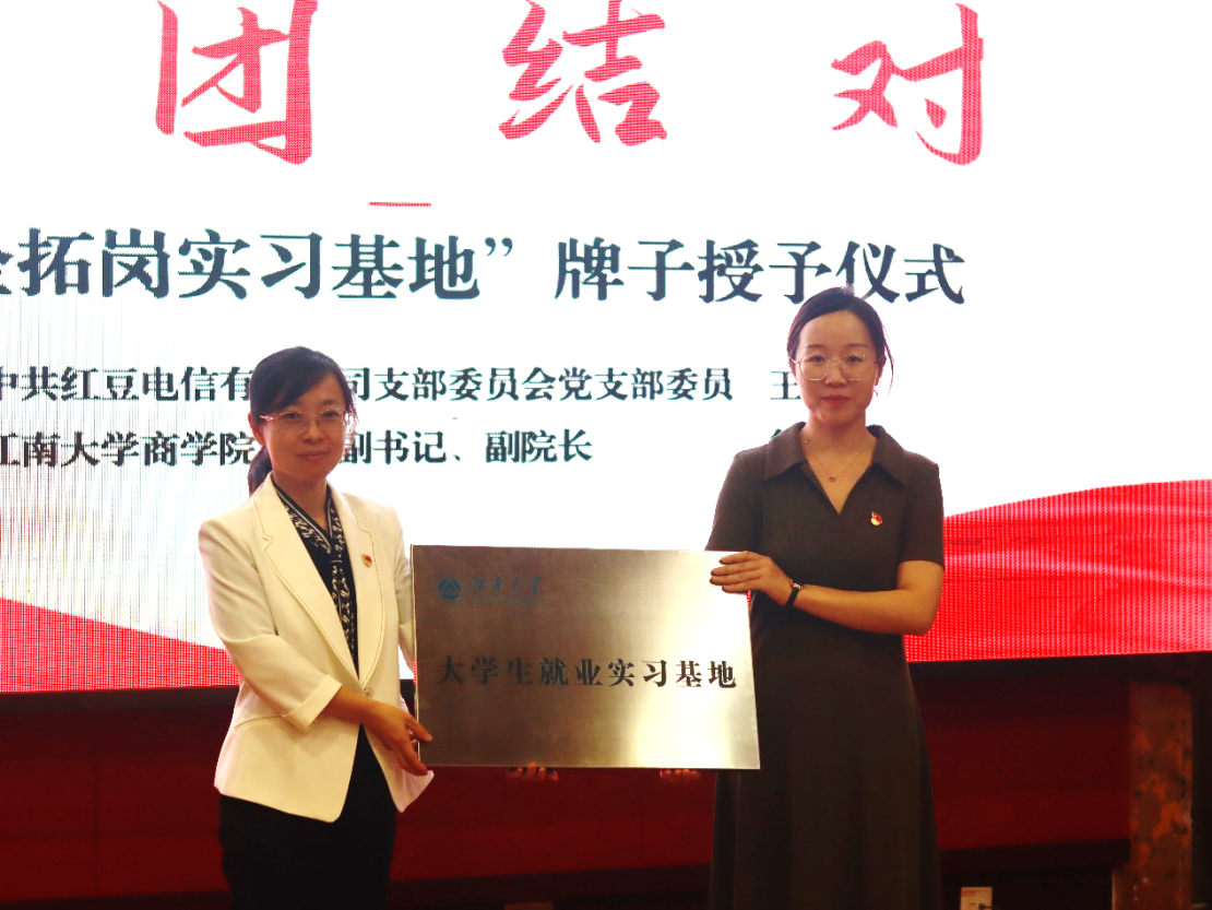 随后,双方支部书记杨益磊、吴松分别代表党支部签署结对共建协议。同时,为落实党支部“五个一”工程目标,红豆电信党支部与商学院金融2102团支部党团结对,共同实现以党建带团建,以团建促党建。徐静副书记为红豆电信有限公司授予江南大学“大学生就业实习基地”工作牌。