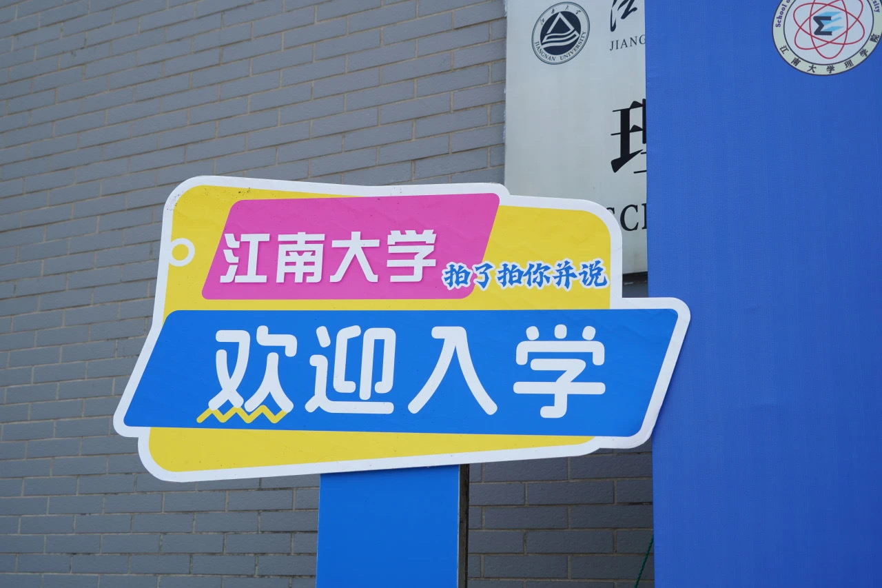 为了迎接新生,崭新的江南大学江阴霞客湾校区也做好了充分的准备。校园里,随处可见各式各样迎接新同学的条幅标牌。简洁的建筑风格与颇有江南风味的水系景观与江南大学本部、宜兴研究生院的风格一脉相承。