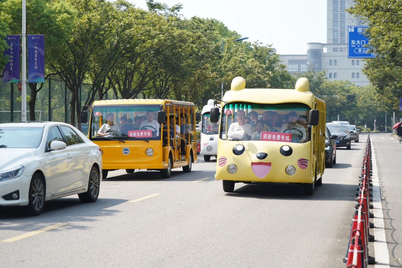 【交汇点8月24日】“我是宋梓涵,来自徐州,我开学啦”“同学,快来品尝新调制的啤酒”“这里还有防晒霜和床垫”“快上车,皮卡丘校车来啦”……高温挡不住迎新的热情,这里的校园处处充满新意与欣喜,好不热闹!