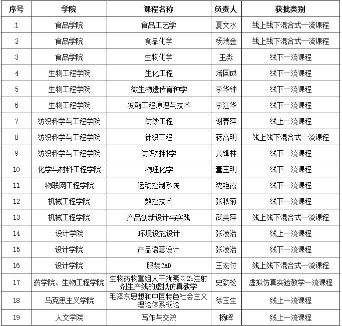 一流本科课程建设是贯彻落实习近平总书记关于教育的重要论述和全国教育大会精神,坚持立德树人根本任务,深化高等教育教学改革,提高教学质量的重要行动。近年来,学校高度重视一流本科课程建设工作,认真落实《教育部关于一流本科课程建设的实施意见》,制定出台《江南大学一流本科课程建设实施方案》,不断加大经费投入和政策保障,积极推动现代信息技术与教育教学的深度融合,开展小班化、翻转式、研讨型教学改革。在前期建设的127门卓越课程基础上,按照一流本科课程建设“双万计划”和“高阶性、创新性和挑战度”建设要求,立项各类课程建设培育项目157门,着力打造具有江南大学特色的五类“金课”。
