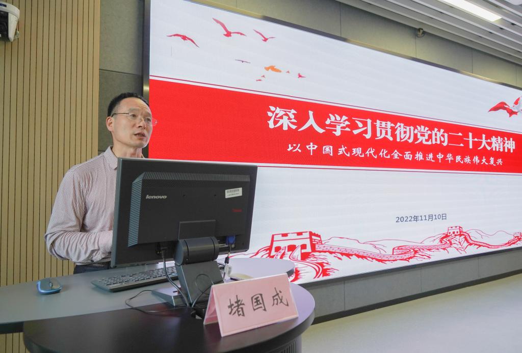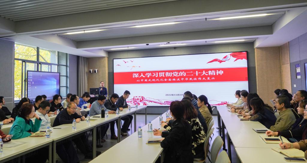为深入学习宣传贯彻党的二十大精神,切实把思想和行动统一到会议精神上来,11月10日下午,校党委常委、副校长堵国成在智慧教学工作站2D104作了题为《深入学习贯彻党的二十大精神》的专题党课,教务处、实验室与设备管理处、采购与招标管理办公室、至善学院、教学评估与教师卓越中心等五个部门的主要负责人和部门全体成员参加学习,教务处副处长、党支部书记吴宝锁主持会议。