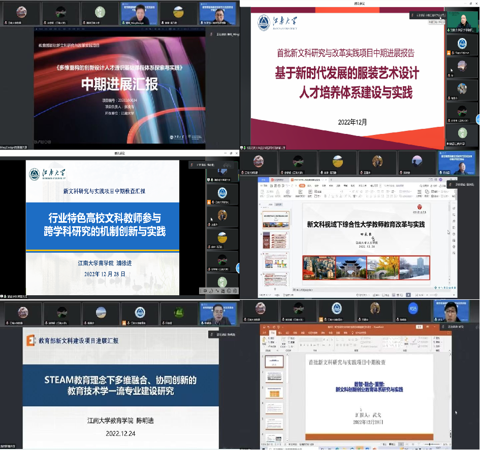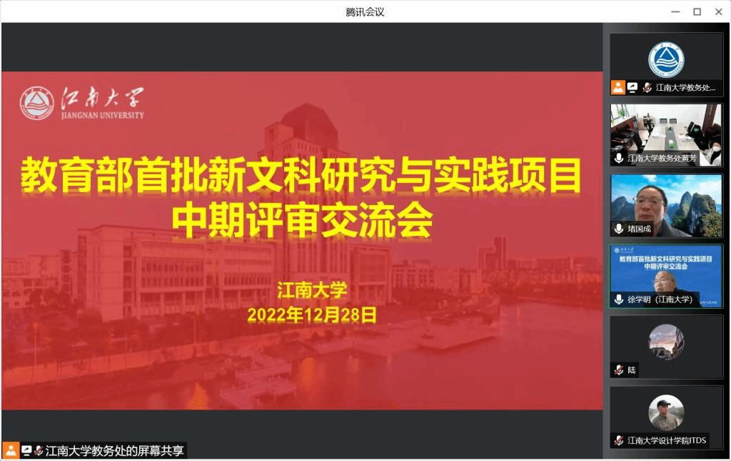 为深入推进首批新文科研究与改革实践项目的建设实施,12月28日下午,学校组织召开了教育部首批新文科研究与实践项目中期评审交流会,会议通过线上形式召开。江苏省教育厅高教处二级调研员郭新宇出席会议并讲话,校党委常委、副校长堵国成教授致辞,江苏省高校在线课程中心副主任、南京审计大学程乃胜教授,扬州大学植物保护学院院长杨国庆教授,江南大学社会科学处处长王建华教授,江南大学设计学院院长魏洁教授担任专家组成员,会议由教务处处长徐学明主持。各项目负责人及相关文科学院领导参加会议。