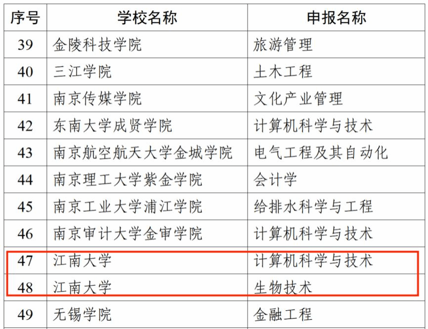为深入贯彻落实《省教育厅关于推进一流应用型本科高校建设的实施意见》(苏教高〔2021〕1 号)等文件精神,江苏省教育厅深入推进产教协同育人,立项建设了100个本科高校产教融合型品牌专业建设点。我校入选的生物技术专业通过构建产教融合的专业教学体系、探索特色鲜明的专业培养模式、建设校企协同的实践教育体系、打造递进式创新能力培养体系等举措,着力培养复合型高级生物技术人才,为我国生物技术产业及相关领域提供动力源泉和人才支撑。计算机科学与技术专业聚焦人工智能学科前沿,立足物联网产业,依托计算机科学与技术一级学科及学校轻工学科优势,培养新工科创新型人才,为区域新经济产业发展及信创产业软硬件国产化进程提供智力支撑和人才保障。