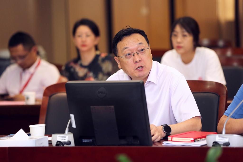 随后,副校长顾正彪对此次学校职称文件修订的背景、近年我校职称文件修订情况以及此次职称文件修订的紧迫性及主要变化作简要说明。人力资源处处长王鸿博从文件修订的背景思路、文件修订的过程、文件修订的整体及具体变化等方面详细介绍了2021版教学科研系列、思政系列、教育管理系列职称文件的修订情况。