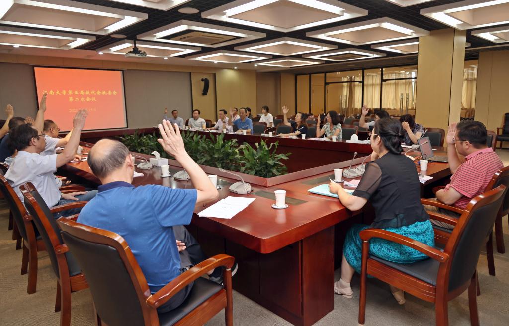 此次会议主要对学校拟修订出台的《江南大学教学 研究系列专业技术职务任职资格申报条例》《江南大学学生思想政治教育系列专业技术职务任职资格申报条例》《江南大学教育管理研究系列专业技术职务任职资格申报条例》等三份文件进行讨论审议。