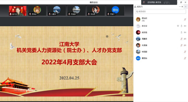 4月25日上午,人力资源处(院士工作办公室)、人才工作办公室党支部以线上线下结合的方式,开展支部学习暨读书分享活动,全体党员参加本次活动,校党委常委、副校长顾正彪以普通党员身份参加学习,活动由党支部书记雷虹主持。