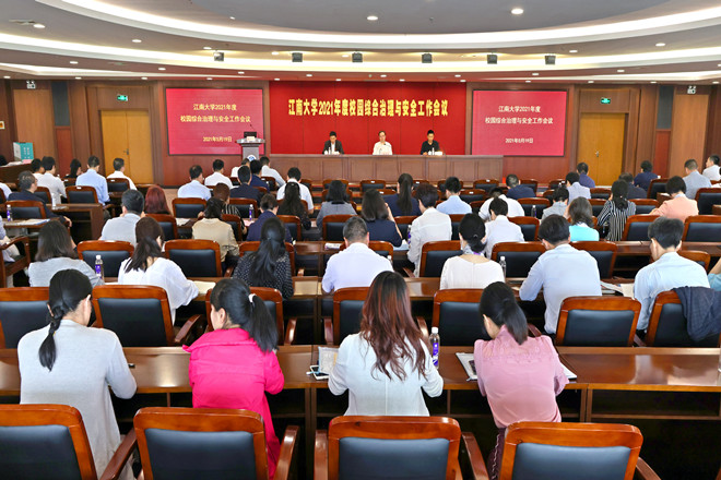 5月19日,江南大学2021年度校园综合治理与安全生产工作会议在图书馆五楼报告厅召开。校党委书记朱庆葆、副书记戴月波、副校长田备,各学院、各部门主要负责人及安全工作相关负责人参加会议。会议由田备主持。