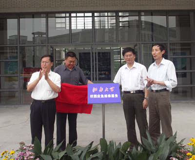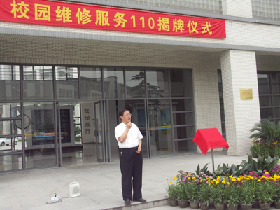 本站讯 继家舍维修110成立之后,为了切实解决新校区水电设施、楼宇及附属设施的维修问题,校园维修服务110与今天上午在逸夫楼前广场挂牌成立,后勤管理处、各学院办公室主任、后勤集团等相关部门的领导参加了揭牌仪式,姜忠平副校长出席仪式并作了精要讲话,仪式由后勤集团戴建明总经理主持。