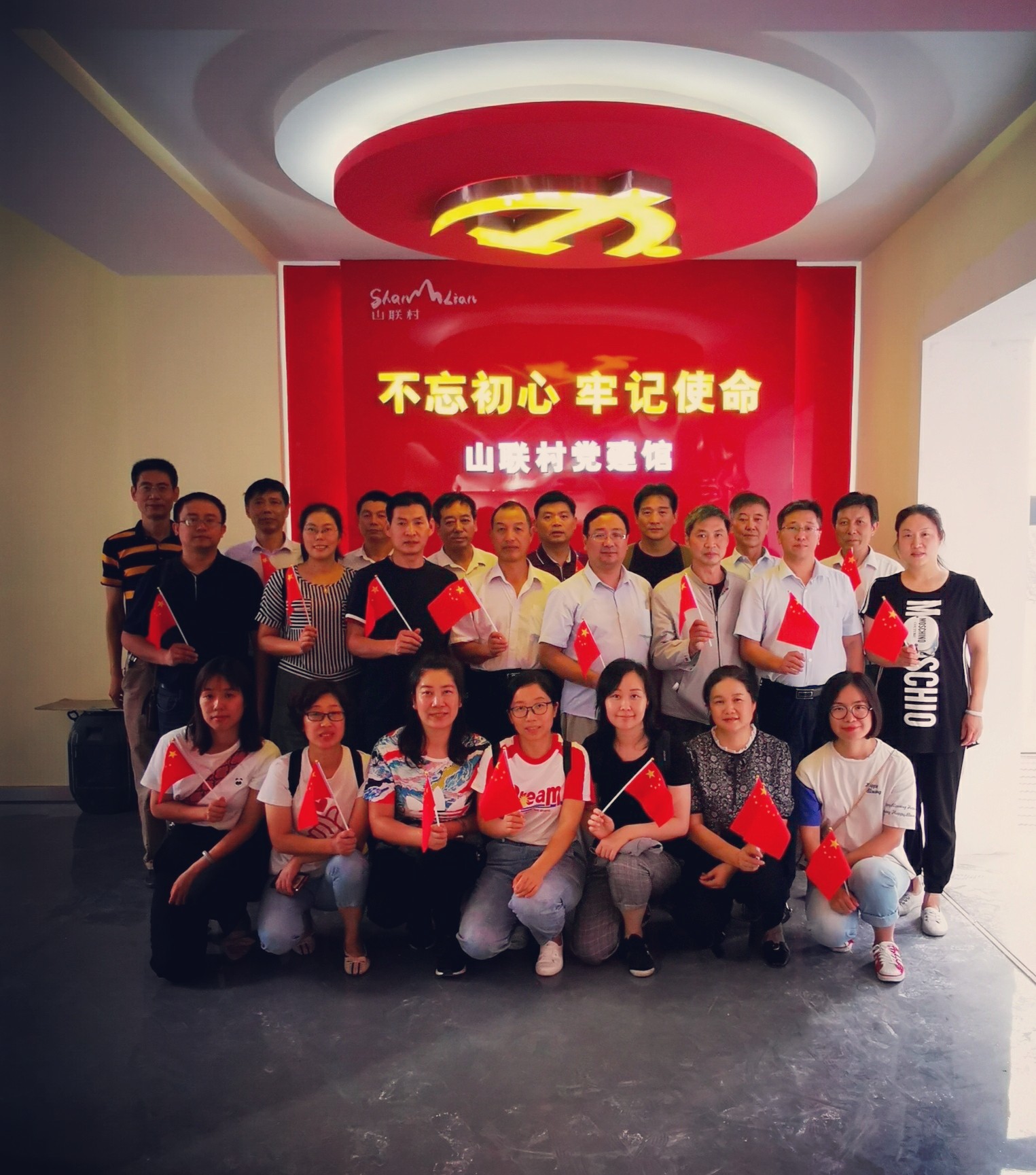 到达山联村后,党员们参观山联村党建馆,党建馆主要分为“知党、爱党、颂党”“聚心、聚智、聚力”“引领、引导、引路”三个部分,最有特色的是山联村的“三色党建”工作法。山联村坚持以党建为引领,充分发挥党组织的凝聚力、战斗力和创造力,紧抓乡村振兴机遇,大力发展特色农作物种植与加工,并以此为契机,推动农业和旅游业创新发展,提升强村富民成效。新老村委领导班子共同努力,全村百姓共同参与,经过十多年的辛勤耕耘,使山联村从曾经的闭塞小村,一跃成为全国村镇的典范,探索出一条新农村建设与经济发展、生态旅游,以农富农相得益彰的具有“山联特色”的蜕变之路,实现了“金色山联”的美好愿望。